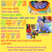 You will need an idea of what you want your collar/cuffs to look like when you purchase this listing, even if it’s just the colours/themes etc. I buy all of my fabric from Minerva, please do look for fabrics yourself, just remember that only polycottons are included in the prices illustrated (https://www.minerva.com/mp?type=Fabrics&substrate=Polycotton) and any other fabrics will add to your total. Of course if you would like something more specific/vintage/licenced I can look for those for you, but there will be an additional cost!