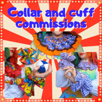 Collar and cuff commissions will be made alongside clownsuit commissions, meaning they could take up to 5 weeks to complete, but are usually finished before then! Please also consider international shipping times and prices as I am based in the UK.