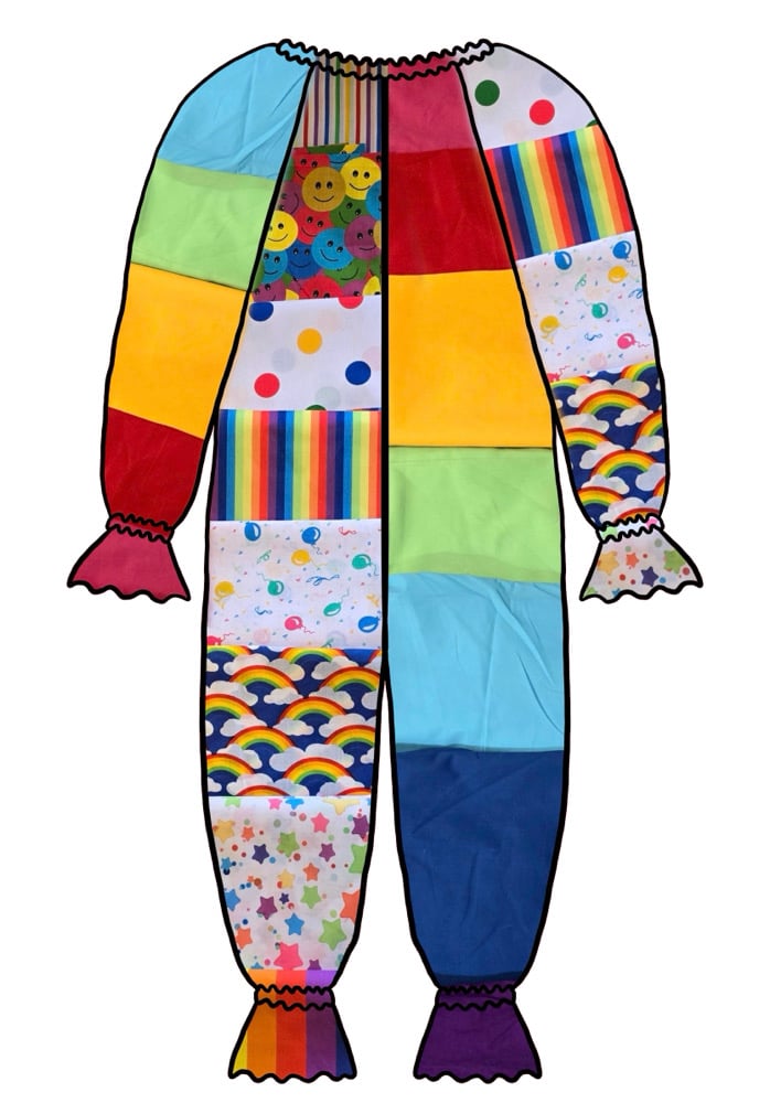 By buying this listing you are buying a made-to-order clownsuit OR dress, made from the fabrics shown in the first image (the order may be different to the mock-up!). I am predicting a 5-8 week turnaround time but this is my first time doing this type of commission so please bare with me! Suits can be made to any size, but as these are pre-selected fabrics some alterations may need to made to the designs for certain sizes.