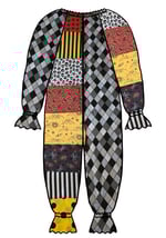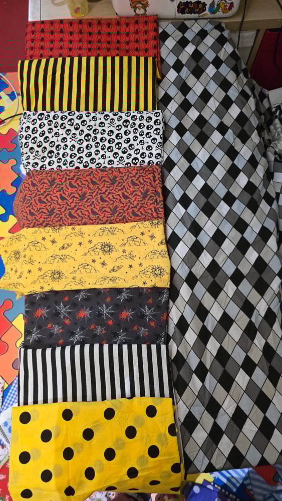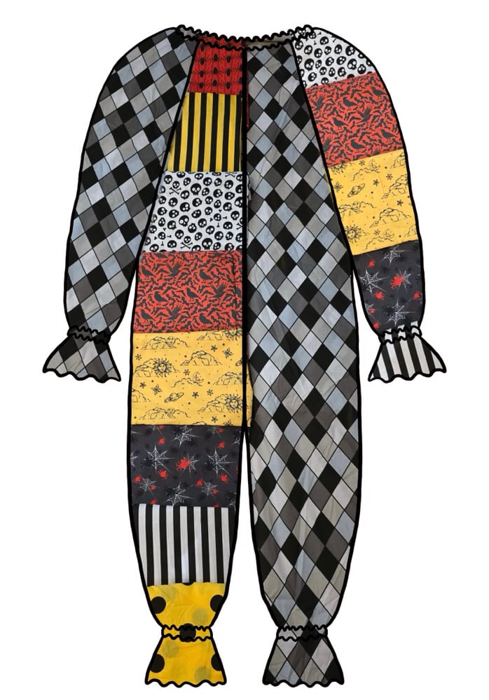 By buying this listing you are buying a made-to-order clownsuit OR dress, made from the fabrics shown in the first image (the order may be different to the mock-up!). I am predicting a 5-8 week turnaround time but this is my first time doing this type of commission so please bare with me! Suits can be made to any size, but as these are pre-selected fabrics some alterations may need to made to the designs for certain sizes.